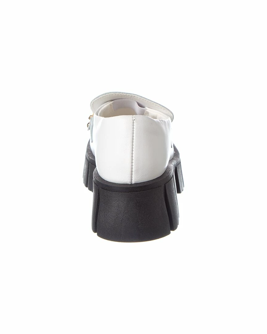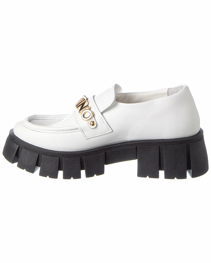 - Elettra Leather Loafer in white leather and gold-tone hardware with logo lettering strap