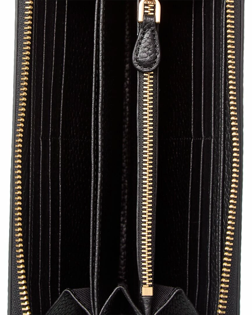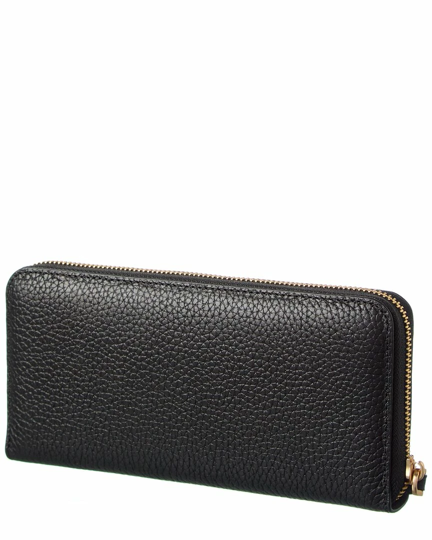 - Farley Continental Top Zip Leather Wallet in black leather and gold-tone hardware with logo accent