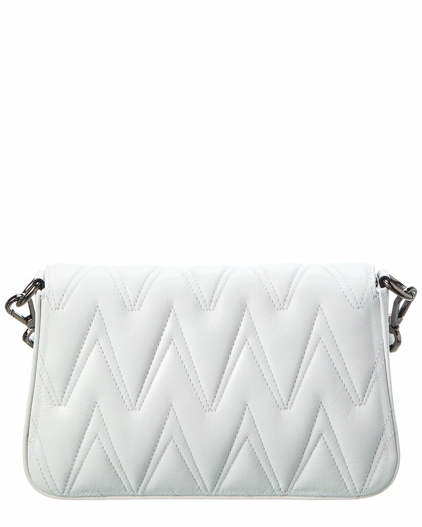 - Florence Diamond Leather Shoulder Bag in white leather and gunmetal-tone hardware with logo accent