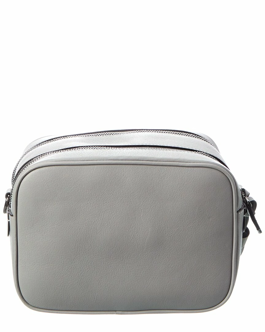 - Heidi Signature Leather Shoulder Bag in dove grey leather and gunmetal-tone hardware with logo accent and mini zippered pouch