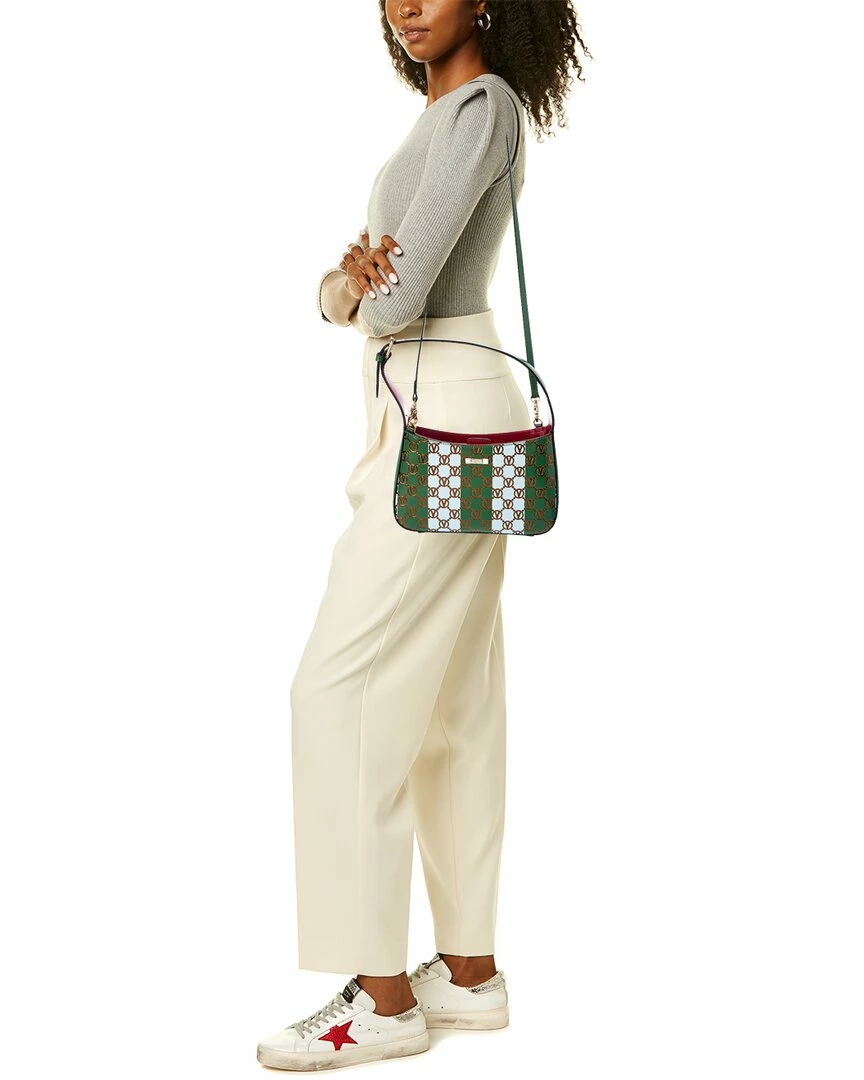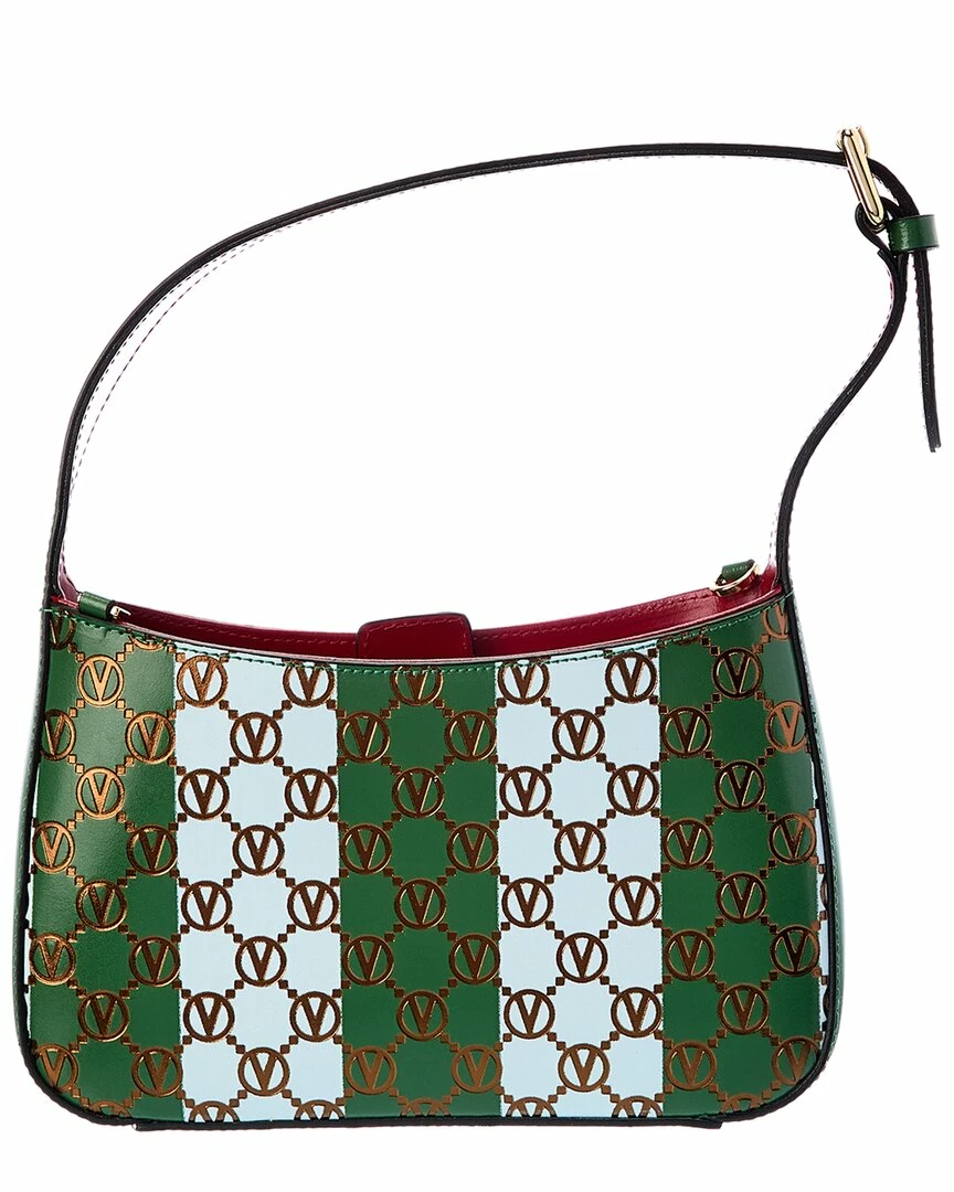 Valentino By Mario Valentino Karl Monogram Stripes Leather Shoulder Bag Women Shoulder Bags