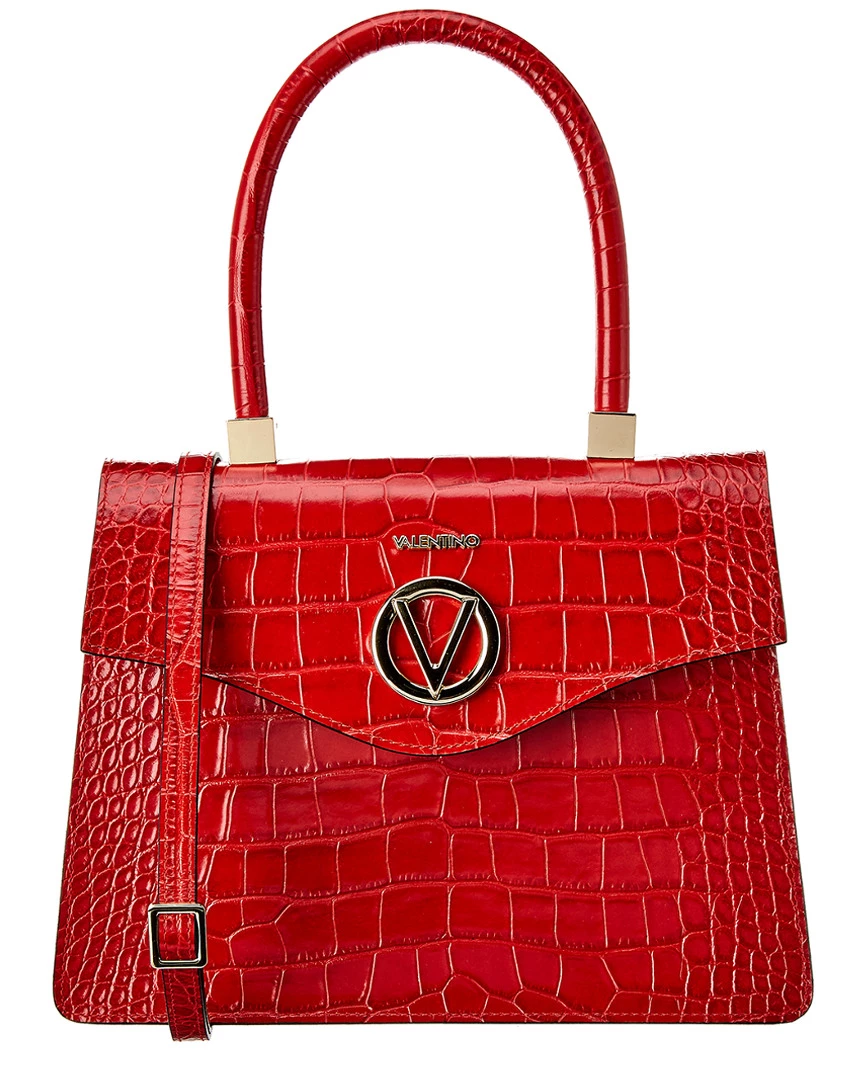 Valentino By Mario Valentino Melanie Top Handle Croc-Embossed Leather Satchel Women Shoulder Bags