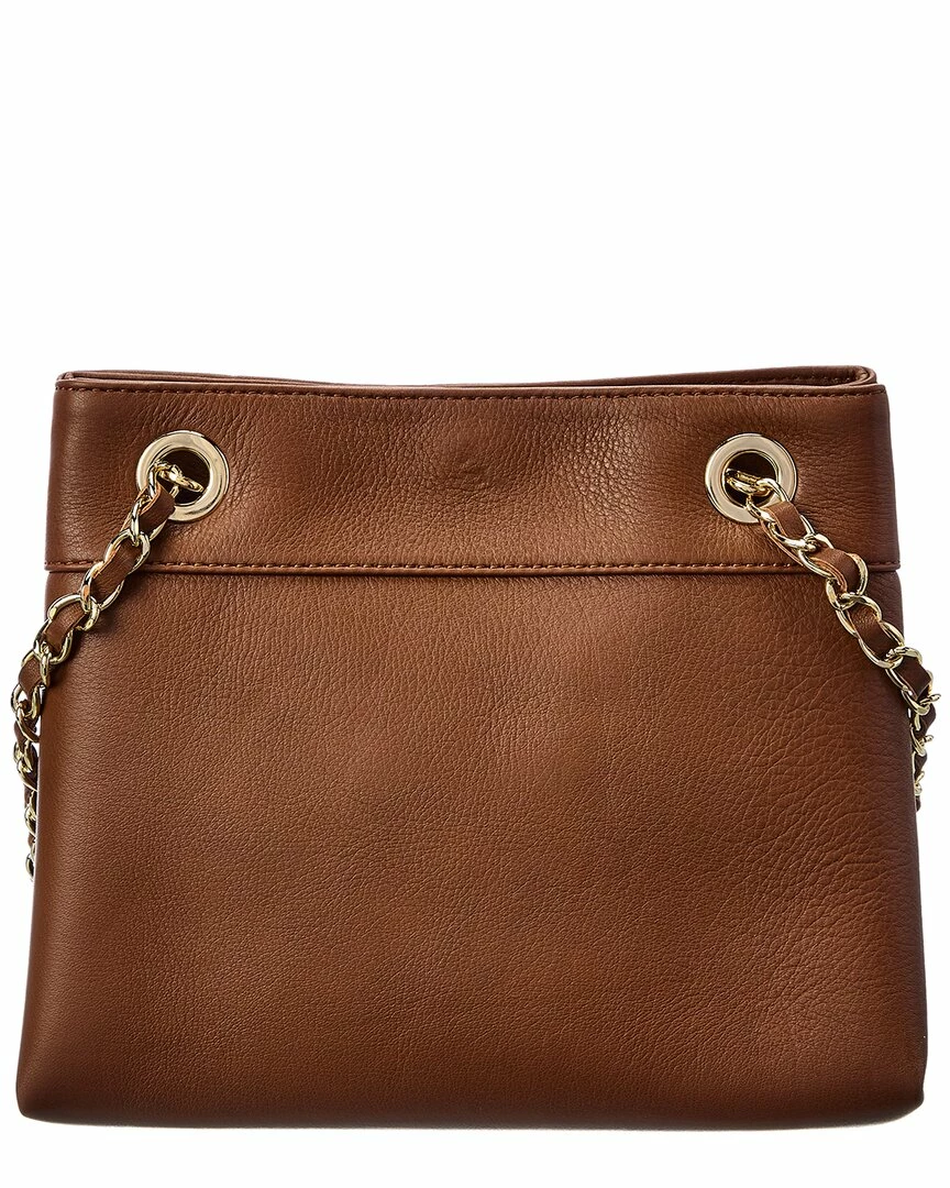- Rita Leather Shoulder Bag in carob leather and gold-tone hardware with stitched logo