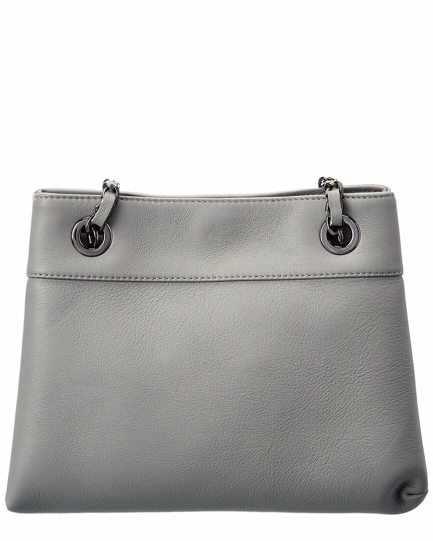 - Rita Leather Shoulder Bag in dove grey leather and gunmetal-tone hardware with stitched logo