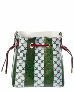 Valentino By Mario Valentino Karl Monogram Stripes Leather Shoulder Bag Women Shoulder Bags