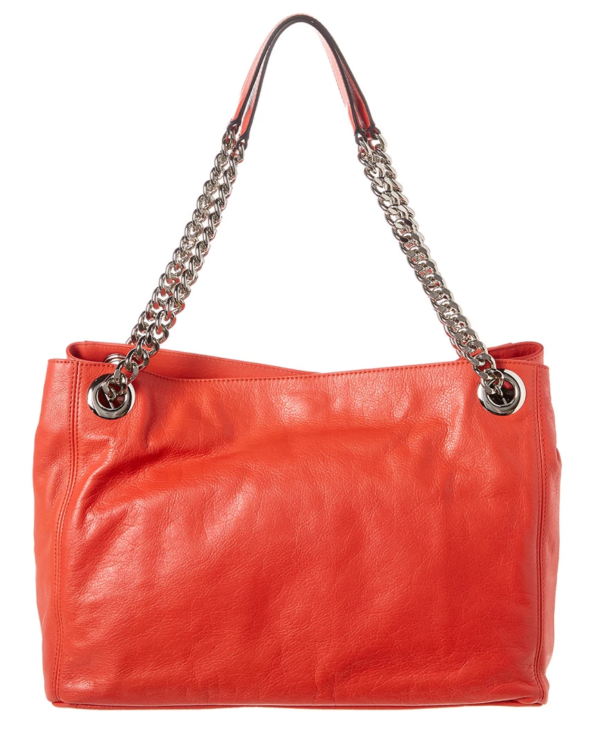 - Color/material: poppy red leather