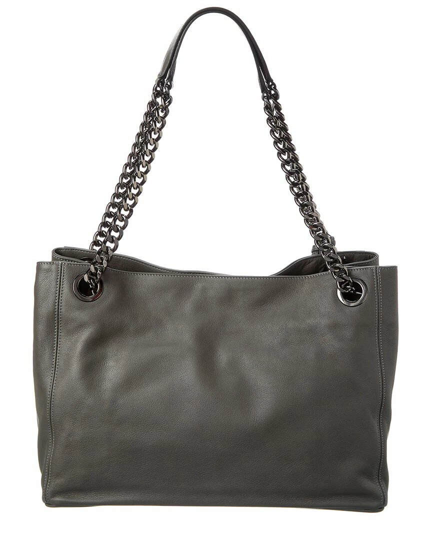 - Exterior design details: gunmetal-tone hardware, tassel accent